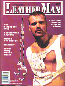 | Color Cover Photograph shot by three-way of David Pearce-Jack Fritscher-Mark Hemry features model Christian Dreesen on location in the Knast Bar, Berlin, June, 1989. The 20 interior photographs are shot by the same 3-way. NOTE: On the Contents Page of Leatherman #3, it is written: "The title Leatherman was inspired by Jack Fritscher's novel Some Dance To Remember." Editor forLeatherman #3, Louis Jay for Terry LeGrand, Parkwood Publications. |