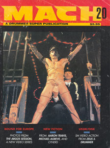 | Shot duo by partners/lovers Jack Fritscher and Mark Hemry, the Cover Photograph, the photograph Inside Front Cover, and center photographs on Contents Page are publicity stills for the video, The Argos Session. The stills were shot by Jack Fritscher-Mark Hemry, in Amsterdam, June 1989, for the video, also shot by Fritscher-Hemry, The Argos Session, for Marathon Films under the aegis of director Roger Earl and producer Terry LeGrand. Issue interior includes a 5-page photo layout of The Argos Session with 10 photographs shot by Fritscher-Hemry. Editor of issue for Brush Creek Media was Joseph W. Bean. |